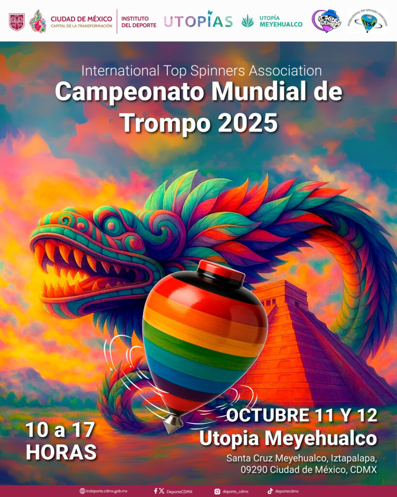 The 2025 ITSA World Spintop Contest will take place October 11 and 12 in Mexico City, Mexico.